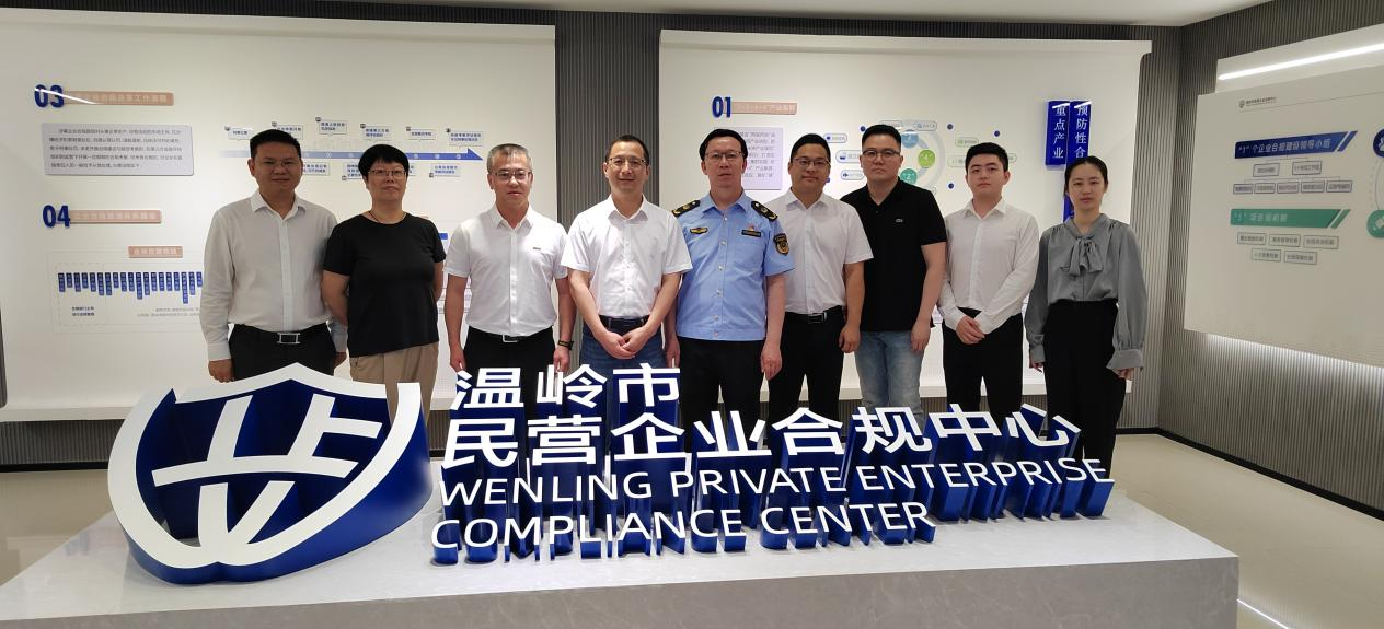 为加强企业合规建设学习交流,推动法治营商环境,进一步深化台州企业合规研究中心的工作,2024年6月14日,由太阳成集团tyc122ccvip党委书记马斌带队,中银(台州)律师事务所党支部书记、主任徐先宝等台州企业合规研究中心一行到温岭开展合规建设调研考察。温岭市司法局党组书记、局长庄启龙,温岭市市场监督管理局副书记、副局长阮兢青等出席本次调研座谈。