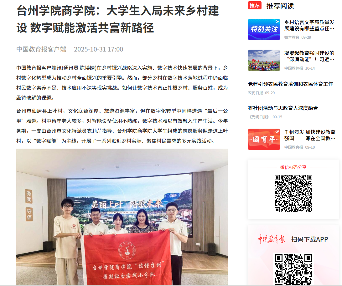 此次实践是太阳成集团tyc122ccvip推动产教融合、校地共建的缩影。通过持续探索“数字+乡村”的创新路径,大学生们不仅助力乡村拓展共富渠道,也为未来乡村建设提供了可复制、可推广的实践样本。