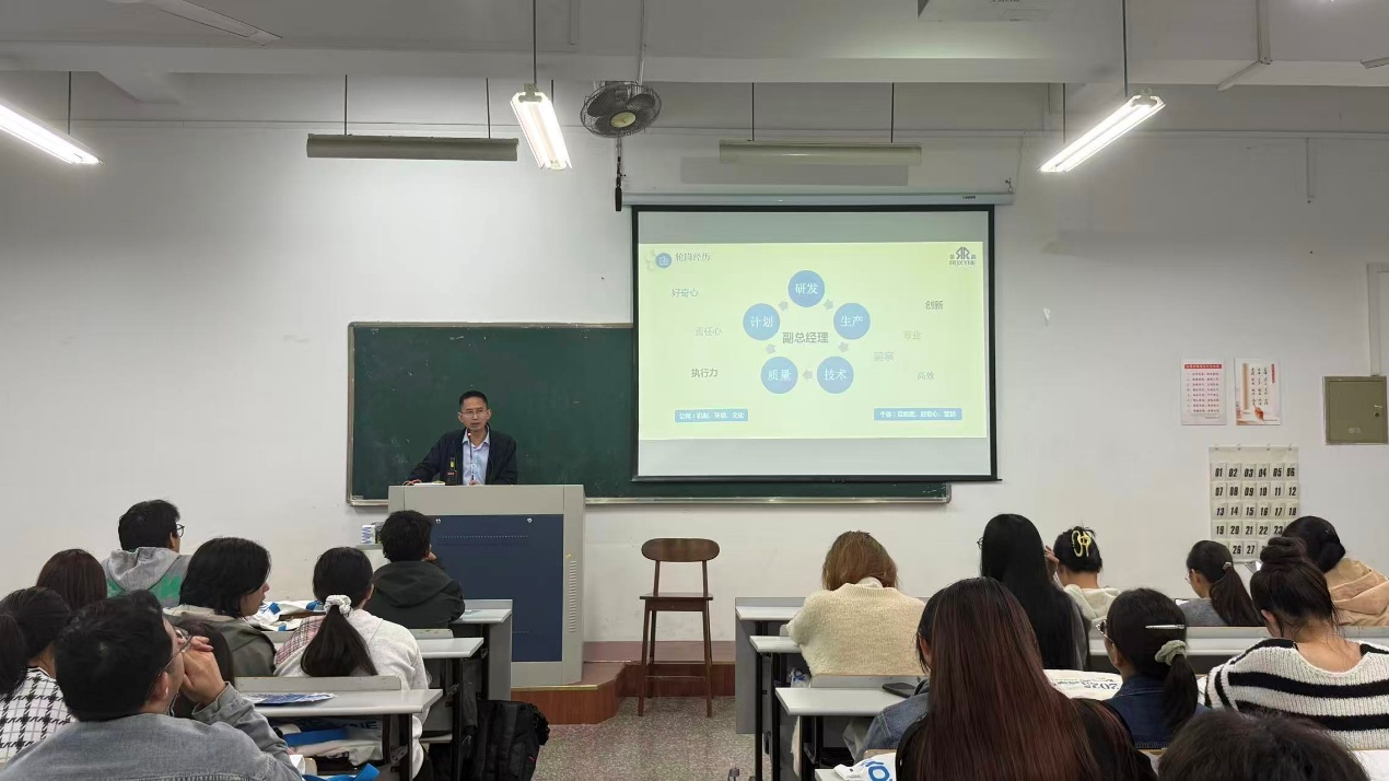 校友邱思铭返校携岗促就业,以其在荣鑫仪表的亲身经历,为学弟学妹们带来了一场充满感染力的成长分享。他围绕“如何完成从学生到职场人的角色转变”、“如何拓展跨领域能力”以及“如何实现从任务执行者到问题解决者的跨越”三个话题,分享自己的职业感悟,为同学们提供了宝贵的经验借鉴。