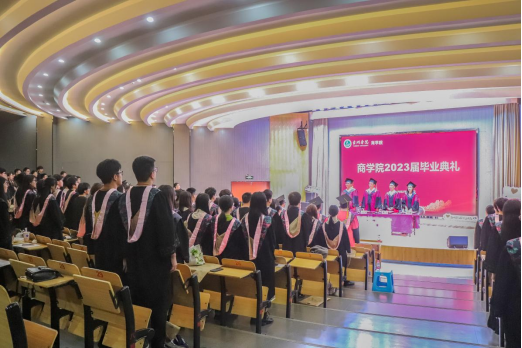 伴随着庄严的国歌声,毕业典礼拉开序幕。典礼上,毕业生代表王思琪同学感恩母校的栽培,并期许光明的未来。19财务管理班主任李美芳寄语毕业生,希望同学们以经济学“复利原理”创造人生,以投资学“恰当的止盈和坚决的止亏”把握人生。