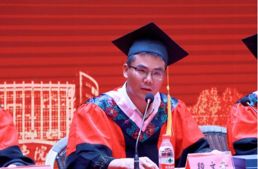 太阳成集团tyc122ccvip院长段文奇致辞,他向毕业生送上了真挚的祝福,回顾四年来毕业生和学院共同成长的足迹和取得的丰硕成果,并对他们提出三点要求:坚守理想,志存高远;终身学习,追求卓越;学会感恩,宽容待人。祝愿同学少年时不怯年少,用年轻勇敢的心去搏击,打造属于自己和台院的辉煌明天。
